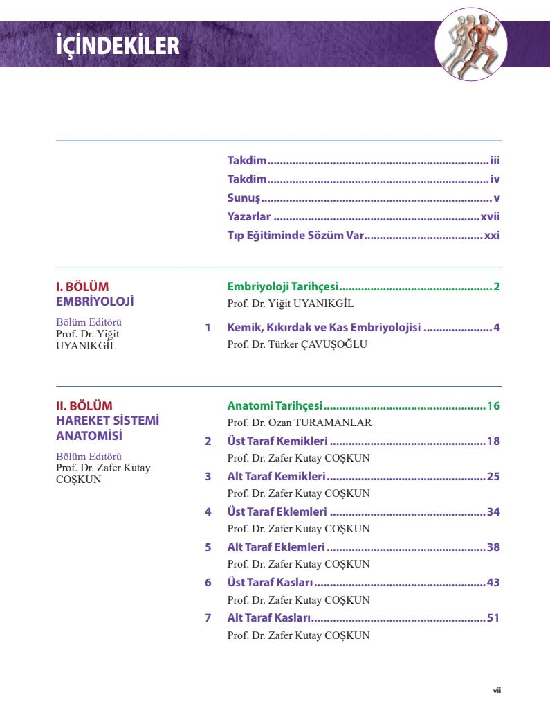 9.Kitap olan “Temelden Kliniğe Hareket Sistemi” ’kitabı mezuniyet öncesi ve sonrası tüm hekimlere yönelik temel ve güncel bilgileri içeren “eğitimde dikey ve yatay entegrasyon” esas alınarak oluşturulmuştur. Bu eğitim modeli organizmamızı sistemler hâlinde gelişiminden itibaren basamak basamak inceleyen ve en nihayetinde hastalıkları ve tedavilerini anlatır. Bu eğitim modeli sayesinde tıp macerasına başlayan en genç üyemiz birinci sınıftan itibaren tüm öğrencilik ve neredeyse hekimlik hayatı boyunca faydalanabileceği bir kaynak eser olarak hazırlanmıştır. Bu amaç doğrultusunda kitap embriyoloji anatomi fizyoloji histoloji-patoloji farmakoloji radyoloji erişkin ve çocuk romatoloji fiziksel tıp ve rehabilitasyon erişkin ve çocuk ortopedi ile erişkin ve çocuk nöromüsküler hastalıkları içeren modüler konular ve zengin görsel içeriklerle birlikte olmak üzere toplamda 13 bölüm ve 88 konu 25 farklı merkezdeki 54 yazar tarafından oluşturulmuştur. Her bölümün başında ilgili bilimin doğuşu gelişmesi ve bilimde ilerleme zincirini oluşturan keşif halkalarının heyecan verici seyrini anlatan “Bilim Tarihçe”lerini okuyabilirsiniz. Tecrübenin eğitimsel değeri olduğu ve öğrenmenin insan gelişim dönüşüm ve ilerlemesinde bir imkân olduğu bilinciyle “Tıp Eğitiminde Bir Sözüm Var” başlığı altında eğitici deneyim ve birikimlerine yer verildi. Kitabın hazırlanmasında emeği geçen tüm yazarlarımıza ve bölüm editörlerimize teşekkür eder öğrencilerin keyifle okumalarını eğitimlerine ve mesleki yaşantılarına katkı sağlamalarını temenni ederiz. Bu çalışmanın ürünü olan bilgi ve becerinin sağlıkla kullanılması dileğiyle… Daha iyiye... Daha güzele... Sevgiyle...