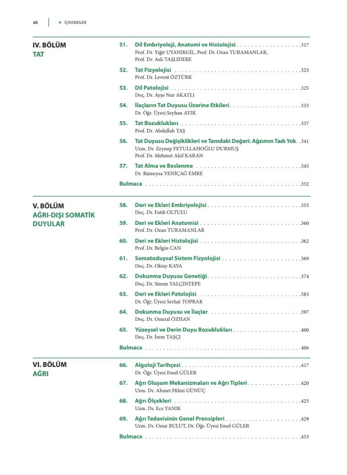 10.Kitap olan “Temelden Kliniğe Duyu Sistemi” ’Birçok disiplinde çalışan araştıran öğrenen ve öğreten değerli bilim insanlarını bir araya getirerek hazırladığımız bu kitapta beynin değişim gücü olan nöroplastisiteye dair merak ettiklerinizi kendi dilimizde okuma fırsatı bulacaksınız. İlk kez yıllar önce doktora düzeyinde “Kognitif Rehabilitasyon ve Nöroplastisite” dersi vermem istendiğinde konuyla ilgili kaynak arayışına girdim. Hem yerli hem de yabancı literatürde kaynakların oldukça az araştırılacak konuların ise çok fazla olduğunu gördüm. Bu durum beni daha çok okumaya öğrenmeye ve öğretmeye itti. Öğrencilerim benden ek kaynak talep ettikçe zorlanmaya başladım işte bu kitap da tam bu noktada bu alanda kendini geliştirmek isteyen herkese bir rehber niteliği taşısın diye hazırlandı. Ülkemizde üzerine çok az sayıda eser bulunan bu alanda geçmişten günümüze hangi çalışmaların yapıldığını hangi keşifl erin gündelik yaşamımıza dokunduğunu hangilerinin terapi ve araştırmalarda kullanılabileceğini öğrenme imkânı elde edeceksiniz. Kitap tıp fizyoterapi psikoloji moleküler biyoloji dil ve konuşma terapisi psikiyatri nöroloji nörobilim gibi alanların yanı sıra müzik sanat ve sporla ilgilenen tüm öğrencilere araştırmacılara akademisyenlere ve eğitimcilere hitap etmektedir. Her bir bölüm titizlikle düşünüldü ülkemiz literatüründeki eksikler gözetilerek kendi yetiştirdiğimiz öğrencilerimizin katkıları ve farklı branşlardan değerli hocalarımızın birikimleriyle yoğruldu. Nöroplastisitenin temellerinden öğrenme mekanizmalarına beslenme uyku müzik sanat ve aromaterapinin beyin üzerindeki olumlu ve olumsuz etkilerinden psikoterapinin dönüştürücü gücüne şizofreni ve bağımlılık gibi nöropsikiyatrik olgulardan fiziksel ve bilişsel rehabilitasyon süreçlerine nörodejeneratif hastalıklardan yenilikçi teknolojilerin nöroplastisiteyi nasıl kullandığına kadar geniş bir yelpazede bütüncül bir bakış açısı sunmayı amaçladık. Bu kitabın ortaya çıkmasında emeği geçen tüm meslektaşlarıma yüzümü kara çıkarmayan öğrencilerime ve desteğini her daim hissettiren Nobel Tıp Kitabevleri ile Bahçeşehir Üniversitesi’ne en içten teşekkürlerimi sunuyorum.